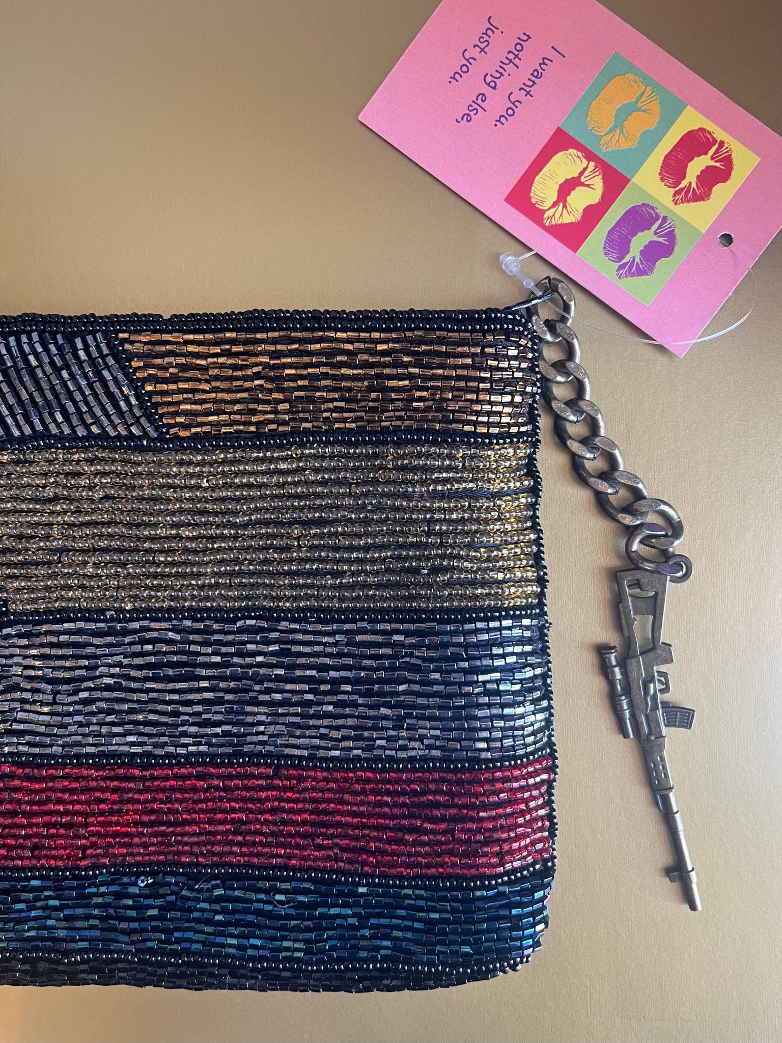 Gorgeous gold, silver and navy with dark red colors and unique design is worthy of the red carpet & will mix and match with so much.