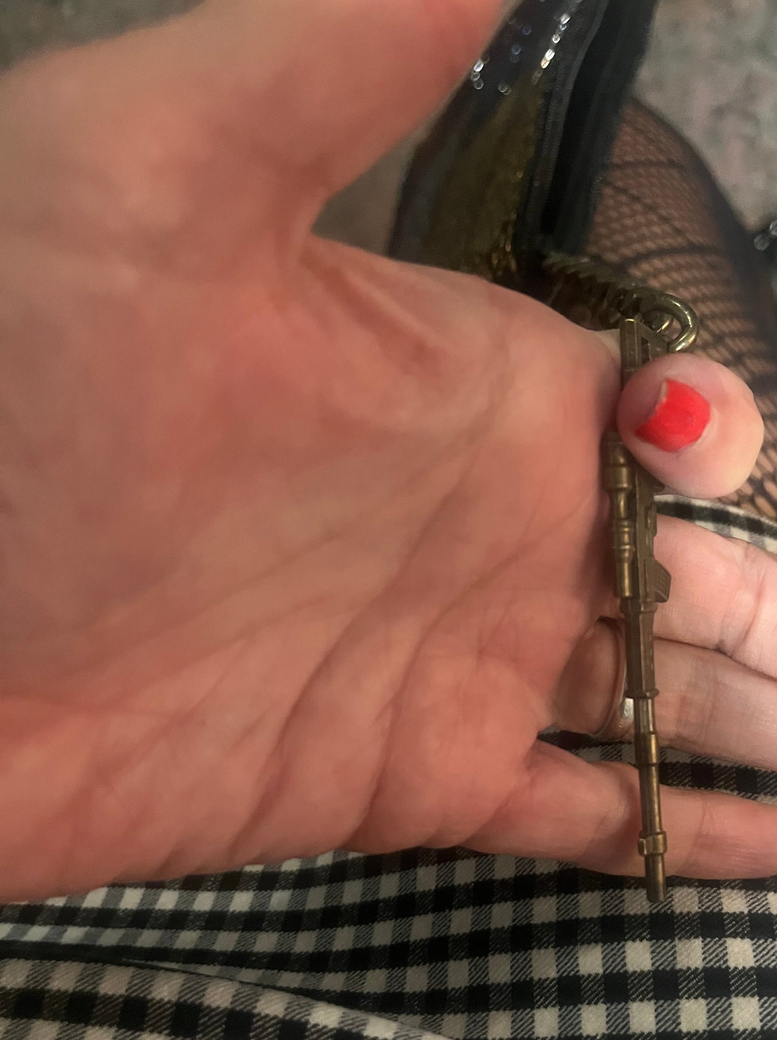 RK brass gun handle and repurposed heavy vintage chain on zipper adds a retro look.