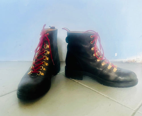 Vintage Italian black suede & leather knee high boots Sz 7-7.5 US